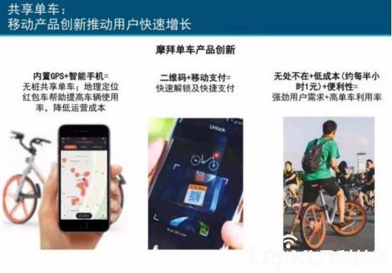 在這份2017年的互聯(lián)網(wǎng)趨勢(shì)陳述中,摩拜單車被獨(dú)自、要點(diǎn)提及。以摩拜單車為代表的同享單車,被認(rèn)為是移動(dòng)商品立異的模范。其間,摩拜單車的GPS地輿定位、掃碼解鎖和方便付出、高效利用率、無處不在的便利性效勞等立異被分別指出和論述。