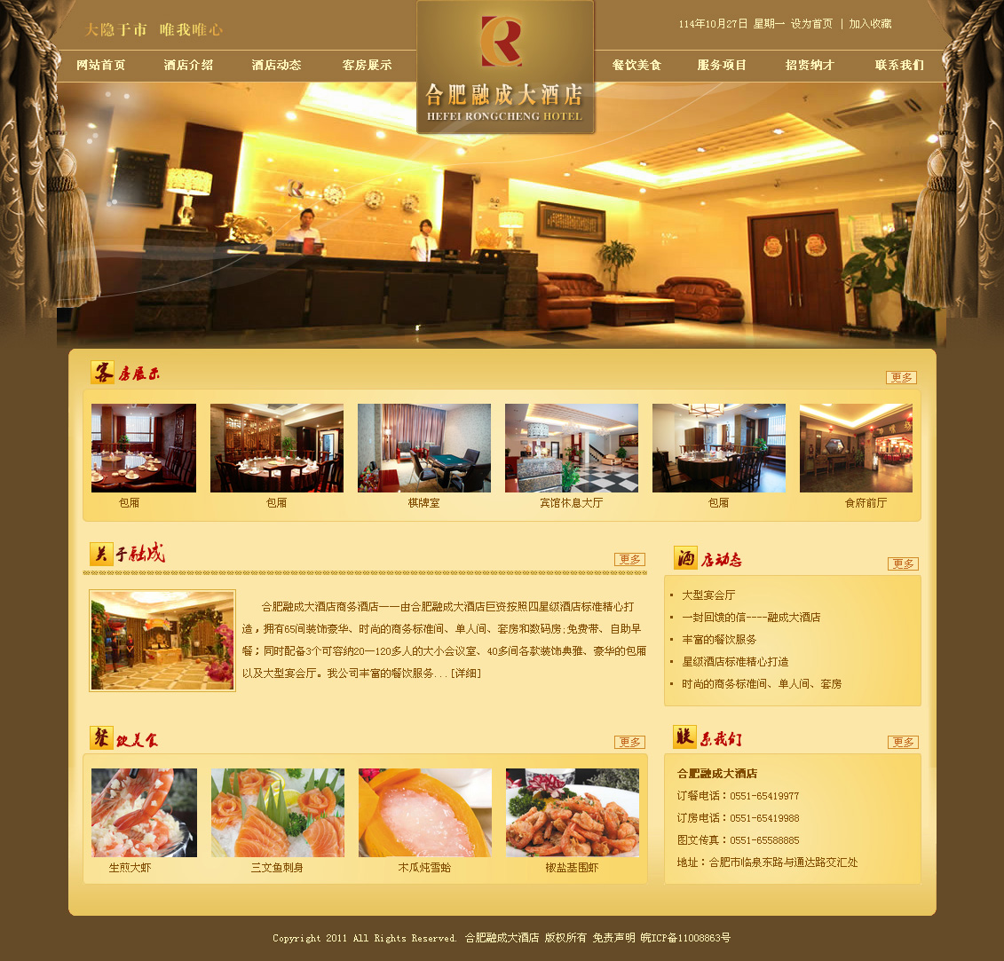 合肥融成大酒店商務(wù)酒店——由合肥融成大酒店巨資按照四星級(jí)酒店標(biāo)準(zhǔn)精心打造,擁有65間裝飾豪華、時(shí)尚的商務(wù)標(biāo)準(zhǔn)間、單人間、套房和數(shù)碼房;免費(fèi)帶、自助早餐;同時(shí)配備3個(gè)可容納20—120多人的大小會(huì)議室、40多間各款裝飾典雅、豪華的包廂以及大型宴會(huì)廳。